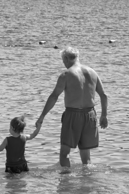 My second oldest, Laci, who's 10 being a good big sister taking Leah into the water.